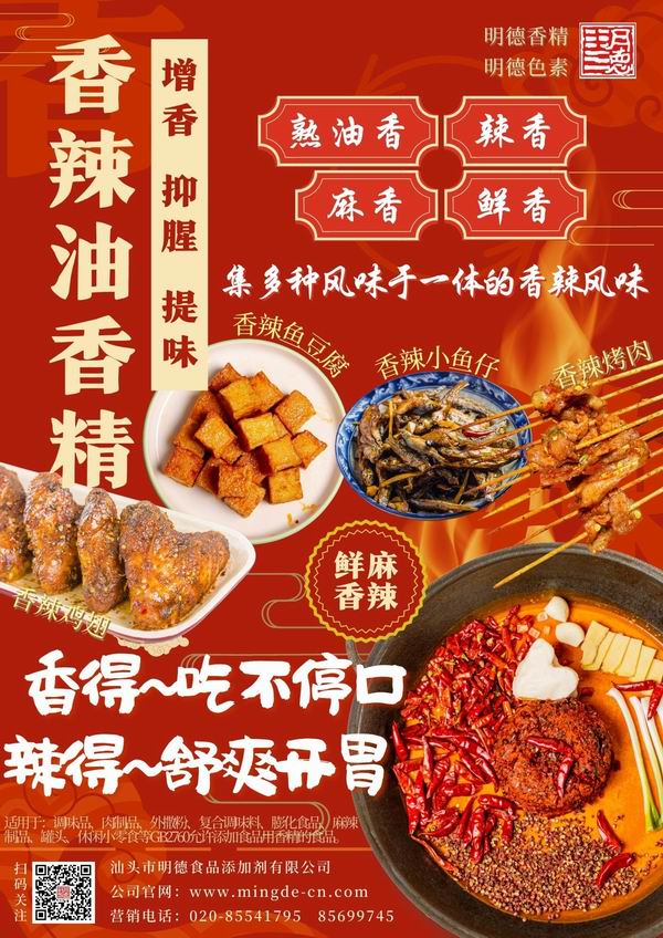 明德食品添加劑 還推出了麻辣鴨脖-辣鹵鴨香精,風(fēng)味香辣鮮香,伴著陣陣香辛料余香,同時椒辣香、鮮香、肉香融合,香味悠長。